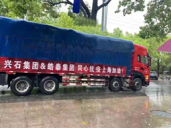 ?響應(yīng)縣委、政府號召,勇?lián)鐣?zé)任,興石集團(tuán)共同皓泰集團(tuán)組織籌集了約50萬元生活物資。4月13日上午,興石集團(tuán)黨支部書記董事長汪錫東攜公司全體黨員和部分職工,一大早冒著綿綿的細(xì)雨在公司門口小廣場隆重集會,熱烈歡送滿載著富硒米、食用油、飲用水等支援上海抗疫物資的三輛大卡車師傅和護(hù)送人員。黨支部書記董事長汪錫東發(fā)表了熱情洋溢的講話:滬皖一家親,守望相助,我們衷心祝愿上海早日打贏這場抗疫攻堅(jiān)戰(zhàn),上海加油!上海必勝!