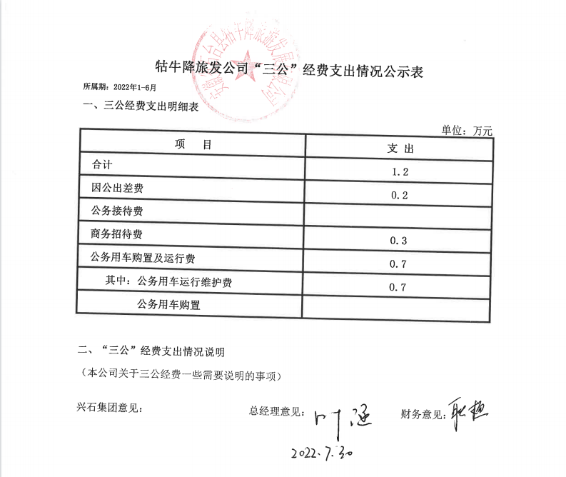 安徽興石投資控股集團有限公司及所屬子公司1-6月份“三公”經(jīng)費支出情況