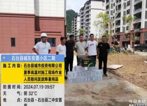 入伏以來,高溫天氣不斷,驕陽似火的氣溫持續(xù)在37度上下徘徊,7月20日,石臺縣城市投資有限公司先后赴項目施工現(xiàn)場,為堅守在一線的施工人員送上西瓜、礦泉水等清涼飲品及防暑降溫用品,為堅持在一線高溫酷暑崗位的勞作人員送去一份清涼的慰問,同時對施工現(xiàn)場進行了安全檢查。